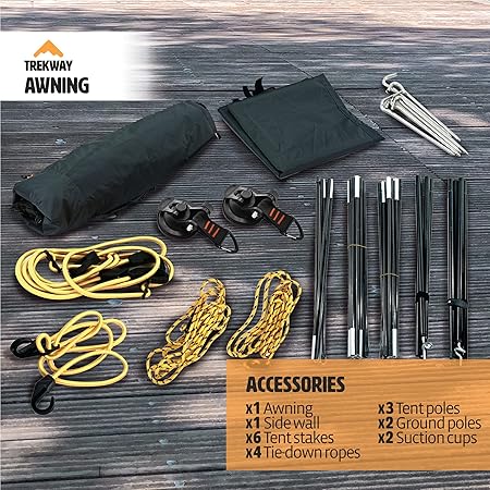 - EXTRA-LARGE SIZE: Spacious 124 x 85 inch awning provides comfortable shelter and protection for up to 4 people during outdoor activities