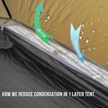 - Waterproof: The waterproof index of the outer campping tent is 2000-2500mm, which is higher than other common single silicon nylon tents. Also, condensate is left against the wall and drained out of the tent through the mesh fabric, which to prevents the the sleeping area from being wet.
