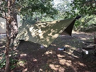 This is a pretty good lightweight camping tarp. It actually works at repelling water while not being as heavy as typical tarp material. It’s not the lightest I’ve ever used, but it’s overall still a good lightweight tarp. This is easy to use.