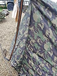 It was way to windy on the day I was doing the review so there are no videos or images of the setup tarp. The material is well made, waterproof and has an odd silver coating on the inside.