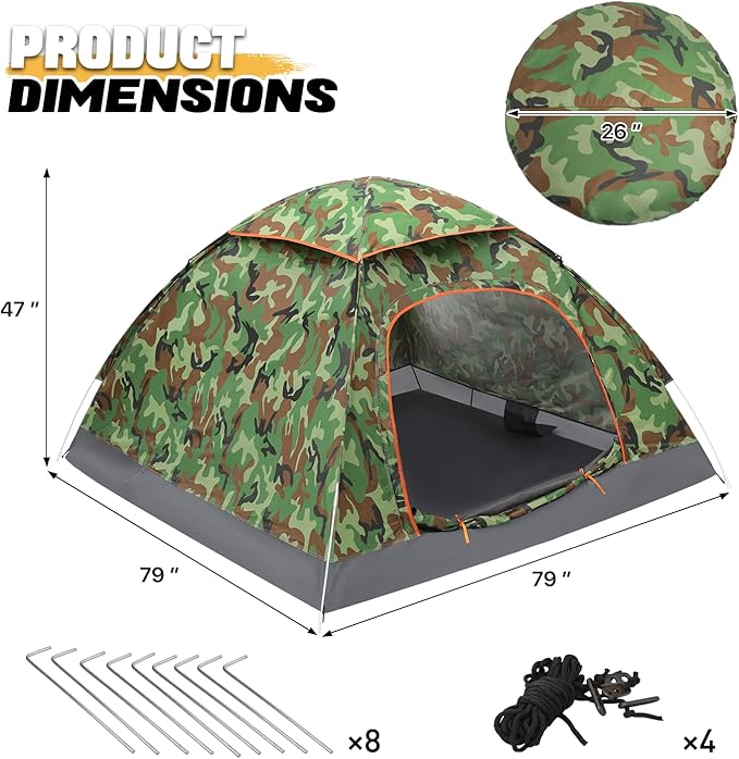 - Quick Easy Setup – Instant pop-up tent with pre-assembled poles sets up in 3 seconds, simply open the bag and let go, so easy and enjoyable and set up the tent. Pops open in the blink of an eye into a ready-to-use camping and lounge tent, and easy to fold back into a compact form. Very roomy for 2-3 adults, ideal for a family rest.