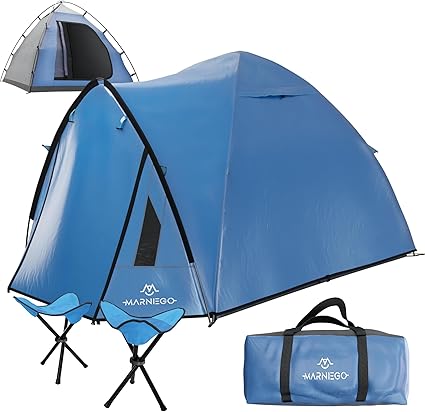- THRIVE IN THE WILDERNESS with the marnieGO’s Large Camping Tent. This two person tent is made from a durable 190T polyester flysheet, offering windproof protection, a PU 2000mm waterproof rating, and UV resistance against harmful rays