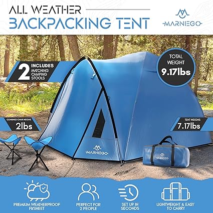 - SPEND LESS TIME SETTING UP and more time creating memories with our easy set up camping tents. Plus, the lightweight design of this two man tent allows you to carry them wherever you go. For a premium tent for 2, click ‘ADD TO CART”!