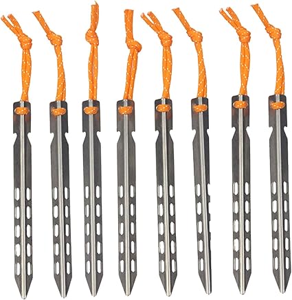 Discover the lightweight 8 Pcs Titanium Tent Pegs for your next camping adventure! Durable and portable, grab yours today for reliable outdoor support!