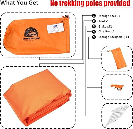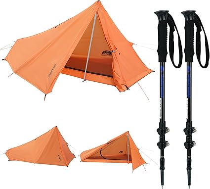 - FLEXIBLE OUTDOOR ACCOMMODATION: Our innovative poleless camping tent can be set up using trekking poles or any stick longer than 46 inches. Alternatively, it can be swiftly pitched by hanging the top guy line from a tree, providing flexibility without the need for poles or sticks. This lightweight solo tent is designed for easy assembly by one person in just 2 minutes, ensuring accessibility even for beginners