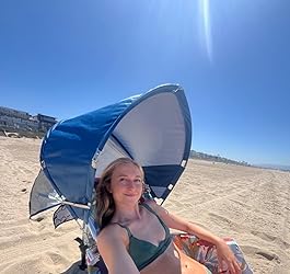 This chair umbrella worked great for me on a recent trip to the beach. It’s easy to set up, take down and fits in my beach tote. The attachments/adjustments are sturdy and the magnets on the back flaps are handy for attaching to your chair. Provided enough shade to keep me from burning and held up to the stiff breeze. So much better than fooling with a regular umbrella.