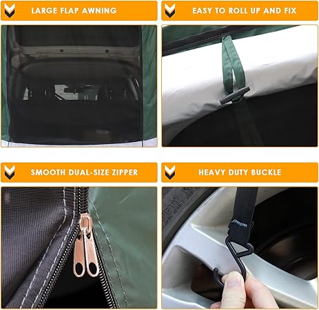 - UNIVERSAL COMPATIBILITY: Fits most SUVs, MPVs, CUVs, and vans with a tailgate, providing versatile camping shelter measuring 72.8 x 68.1 inches