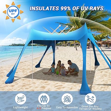- Spacious Shaded Space: Our large beach canopy, 9.8 x 9.8 x 6.5FT size is designed to meet the needs of outdoor travel, providing spacious shaded space, whether it’s for family gatherings, friends’ picnics, or personal relaxation, it can easily accommodate up to 4-6 people, which makes it an ideal choice for your outdoor beach and camping.