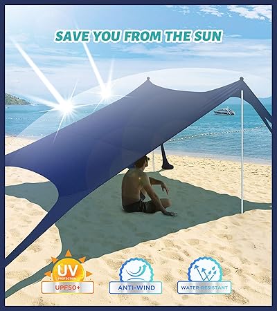 - SAVE YOUR FROM THE SUN = UPF50+ UV PROTECTION & LARGE SHADING RANGE! This EYEFAME beach tent is quite an attractive sunshade beach. It boasts unmatched UPF 50+ ultraviolet protection that protects you and your loved ones from 98% of UV sun rays.The adjustable beach windscreen can cast extra ample shade, ensuring better sun protection. Outings in the summer will become a lot more pleasant and safer when you have our beach canopy.4-sided ventilation keeps you cool without leaving your beach shade.