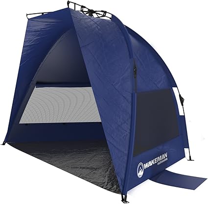 - PRODUCT DETAILS – Dimensions: 55″ (H) x 87″ (W) x 52″ (D). Fiberglass poles- 7.9mm diameter. Tent Material 190T Polyester. UV Rating: UPF 50+. Water Repellent. Includes tent, carry bag, stakes and sand pockets. Color: Blue