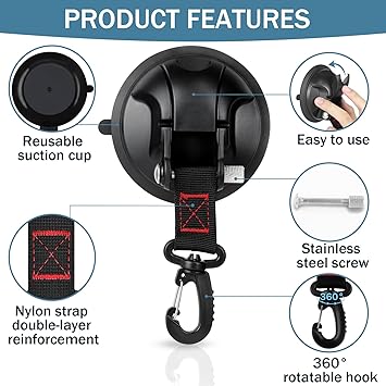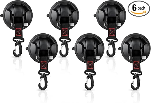 Vashly 6pc Heavy Duty Suction Cup Hooks for Shower, Car, Boat, Camping