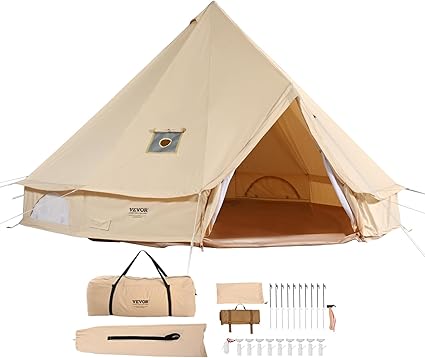 - Comfortable Experience: The 5″ stove hole, made from flame-resistant material, features a 43x43cm flap, allowing safe indoor heating. Four mesh-covered windows offer excellent ventilation and protection during the summer. Roll-up canvas and mesh keep critters out while letting cool breezes in for a peaceful sleep.