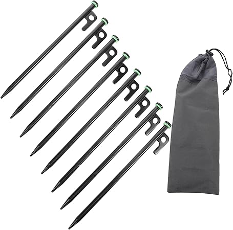 - steel construction: made from sturdy steel, these tent stakes are built to withstand the elements and provide longlasting durability