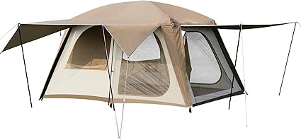 - 2 ROOM TENTS & OUTDOOR CINEMA: With a separated curtain, the tent becomes two room cabinet tent, which improves privacy. You could also enjoy movie time at night when projecting on the back of the tent. Full set: 1 x tent, 1 x rainfly, 1x tent Poles, 16 x tent stakes, 8x guylines, 2x door front poles (59.05″ Length) and 1x carry bag. NOTE: there are only 2 door front poles (59.05″ length) inside the packaging, and the other poles need to be purchased separately or replaced with tree branches.