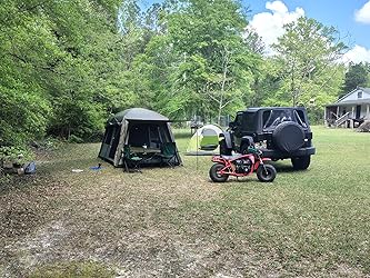 Not only is it a pain to set up, but I swear I tripped over the entrances way every single time entering and exiting!!! Even the poor dog couldn’t get over the mesh screen that literally sits off the the ground as the zipper goes from the ground and up like an archway. If you even leave it open the bugs come in, thus defeating the purpose of the screen to keep them out!! This is only a 2 season type of tent!!! There’s too many areas open to the weather coming through. So it’s nearly impossible to keep it warm unless you have a heater running constantly. This takes up your very limited space!! Not at big as they make it look!! I could fit one cot in one side but the front then became a constant mess because you had to put everything (clothes, camping gear, hiking gear in the other side and maneuvering, becomes a huge issue. Not worth the price or extra work. I went with the black as it seemed sturdier, BUT, in the sun it will bake you out!! So I covered the top and two sides with spare white sheets to reflect the sun, this did help but constantly maintaining they were attached and not slipping was a huge pain!!! Not worth all this hassle!! Of course used once and pass the return date make this a very pricey mistake. To take my advice and DO NOT WASTE YOUR MONEY!!!