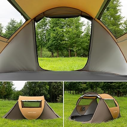 - INSTANT POP-UP & COMPACT: Simply unpack and release , the tent pop up automatically in seconds; Collapses to 31.4″ diameter, 5.5″ thick (5.7 lbs), this instant pop-up tent is ideal for car camping or backpacking;