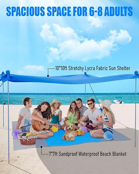- ADVANCED SUN PROTECTION: Crafted from high-quality, stretchy lycra fabric, reinforced at the corners for durability, our beach tents provide UPF50+ protection against harmful UV rays. Say goodbye to sunburns or glare, making it a must-have for both kids and adults soaking up the sun.