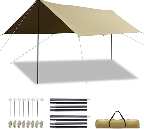 - Camping tarp with poles for versatile use: This camping tarp with poles provides a reliable outdoor solution for various activities, whether you’re camping, hiking, or enjoying a picnic. Its easy setup allows you to create a shelter quickly, making it a must-have for any outdoor adventure