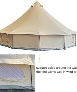 - 【Sturdy and Waterproof Glamping Yurt】This camping yurt is made of cotton canvas fabric and has a waterproof treatment. In addition to the center pole, there are 9 wall poles to support this tented yurt. This design makes this luxury camping tent work better in wind, rain or even snow