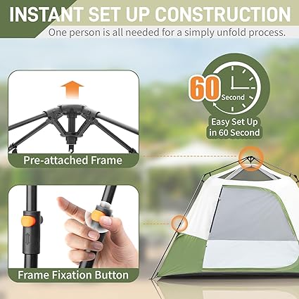 - 【1 minutes Easy Set-Up】No special tricks are required , and 2 people could easily set up an internal tent in 1 minutes . Tents for camping stays completely dry under the light rain .