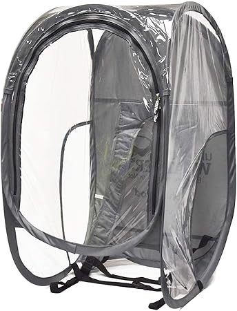 - Stays in Place : Adjustable backpack and waist straps help keep the ShieldPod securely in place, while the clear, PVC panels on 3 sides and zippered front panel provide full visibility