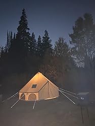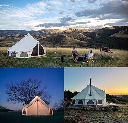 - HIGH-QUALITY FEATURES: Canvas bell tent with A-frame door and heavy-duty trouble-free top-grade zippers for maximum functionality. Detachable zip-in/zip-out floor. The canvas bell tent has 2 layered windows and 2 layered doors; a canvas cover that could be rolled up and additional mesh to keep the critters out while allowing for the cool breeze to come in for long night. The canvas windows and door come with heavy-duty trouble-free top-grade zippers that you can rely on.
