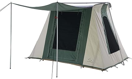 - MULTI-FUNCTIONAL FEATURES: This tent comes with high quality Zippers for maximum functionality, galvanized steel poles to give protection from corrosion in the long-run, a roof with proprietary 12 oz. 100% cotton double fill canvas that is silver coated essentially reflecting back maximum heat while keeping the ambient temperature cooler that a traditional cotton tent, and natural hard wood rope runner to tighten the tent properly while pitching front awning and No-See-Um Mesh protection
