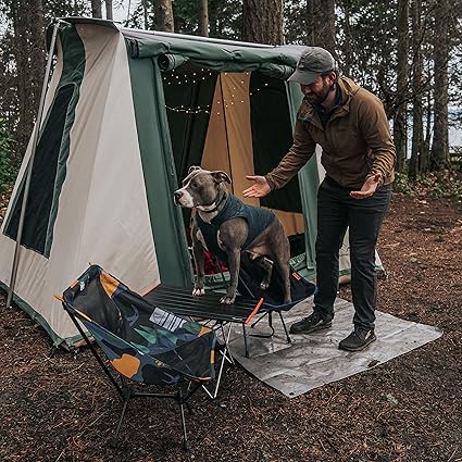 - QUICK SETUP: This canvas tent is quick and easy to set up, simply pushing down on the top bar, inserting pins, and attaching upright poles to give it its final shape. Never struggle with configuring a tent again