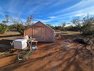 At first we had missing parts for this tent, but the seller was great and is sending the part. This is my dream tent. TPU windows and doors are common in the rest of the world but not the U.S. In fact, I have one other tent with TPU windows and I had to buy it from Europe…and get this, it’s a Coleman tent not available here. Go figure. TPU is great for rainy days, allowing you to sit inside the tent and still enjoy the scenery. With other tents if it rains all the windows have to be zipped closed and then you’re just looking at the inside of the tent. TPU is also great for cold weather. As for the inflatable feature, it doesn’t take much to inflate it. Tip: stake it down first or it gets wobbly. Also, warn everyone you’re going to open the valve when you’re deflating. The blast of air is shocking. It’s a big, heavy tent but it’s what I want. (I have smaller tents.) Now, I’ve had this tent in light rain and it seemed fine. I still have to take it out on a stormy day and see if it holds up. It doesn’t come with a fly but I’ve got a large Naturehike tarp I can put over it. Until then, I love this tent.