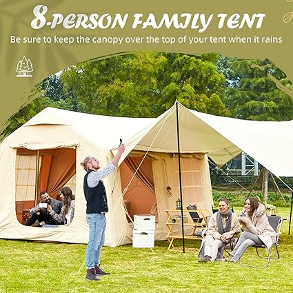 - 【Roomy 8ft Height for Small Crowds】-With an 8ft ceiling height (10ft x 13ft floor area), this glamping tent lets adults stand and stretch freely. Fits 8-10 people with space for air beds, gear, and lively family game nights