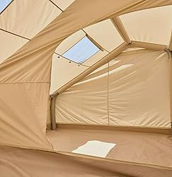 - 【SET UP IN ONE STEP】-This inflatable tent is a one-piece built-in inflatable pole design with high-temperature heat-sealed seamless splicing technology. And it is equipped with a manual inflatable pump with its own pressure limiting valve, which can better ensure your safety. You only need to spend a little time to complete the luxury tent setup, so that your camping trip is more relaxed