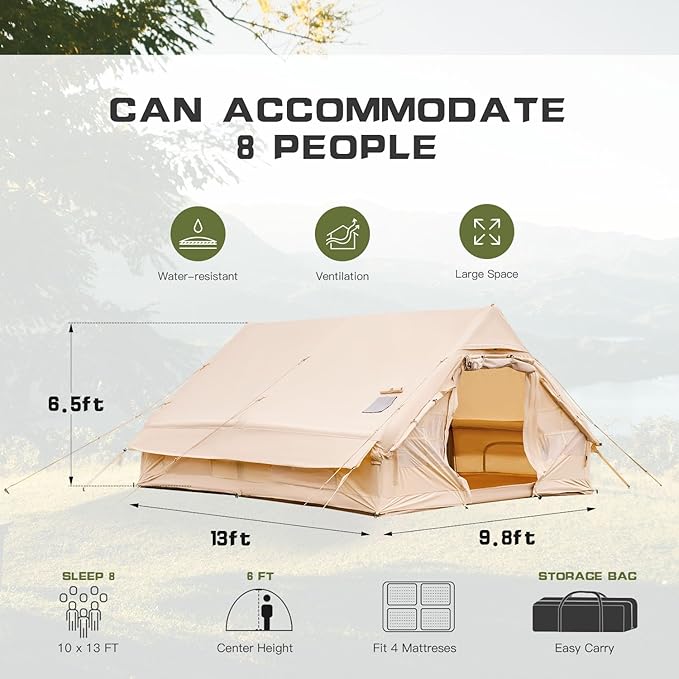 - EXTRA LARGE SPACE for 6-8 PEOPLE: This inflatable tent offers generous space for families or groups of friends, comfortably fitting 6-8 people with extra storage bags for your essentials