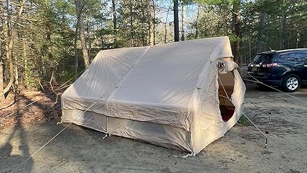 - 10 MINUTES INFLATABLE INSTALLATION: Set up the tent effortlessly with an inflatable support post and a manual pump. No need for a manual installation of the poles, making your camping trip hassle-free