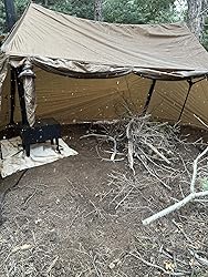Works very well held up in the thick snow. The picture of the next morning with it sagging is only because I didn’t sleep in it that night with the stove going the snow would’ve never settled on it. It’s got plenty of room for two people.